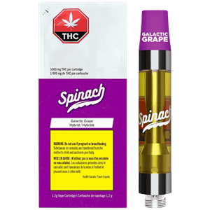 An interstellar journey of flavour begins with earthly elements from right off the vine. The Spinach Galactic Grape 1.2g Vape is gushing with sweet flavours that go to the ends of the universe and back with just one puff. Inspired by the Galactic Grape cultivar with Grape Diamonds and Stardawg lineage, it’s no surprise that this potent vape at 1000mg of THC per cart breaks barriers of flavours and aromas.