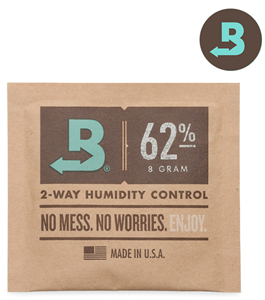 8G – 300x Freshstor® Boveda Patent 2-way 62% humidity control pack For use in small containers Lasts 2-4 months depending on conditions Replace when Boveda turns rigid